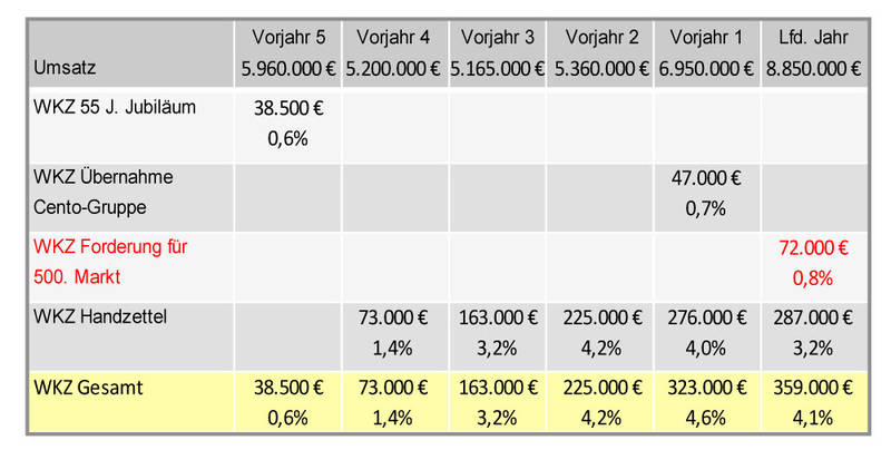 Mit dem Lösungsansatz aus dem Workshop konnten Teilnehmer ähnliche WKZ-Forderungen für Jubiläen, Übernahmen, Hochzeits-Boni, etc. um bis zu 80 % reduzieren. Mehr noch: durch die Anwendung der im Workshop vermittelten Lösung erzielen Sie beim Handel nachhaltige Wirkung. Sie verhandeln endlich wieder auf Augenhöhe und erreichen bessere Ergebnisse.