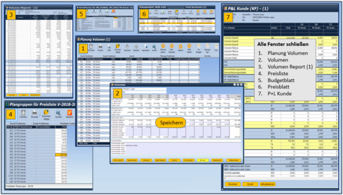 Die in TLIT installierte Windows-Technik ermöglicht dem User einen bequemen Wechsel in den gewünschten Funktionsbereich. Zusammengeführt werden die Ergebnisse in der TLIT-Kunden P+L und in weiteren Plan Analysen, die speziell für die Anforderungen der User bei der Erstellung der Geschäftsplanung und zur Vorbereitung von Jahresgesprächen entwickelt wurden.